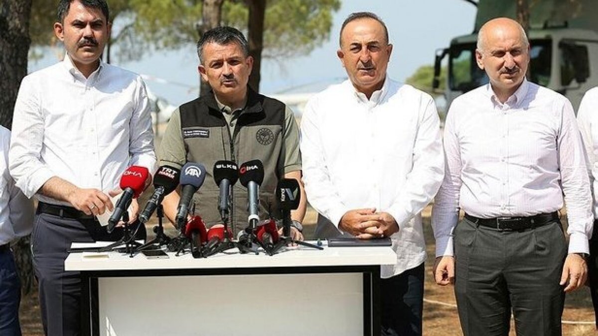 Bakanlar yangınlara ilişkin bilgi verirken, yangınların söndürülmesi için topyekun bir seferberlik içinde olunduğunu söyledi.