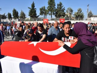 Törene katılan vatandaşlar terör örgütü aleyhine sloganlar atarak, tekbir getirdi. Binlerce kişinin katıldığı törende gözyaşları sel oldu. Adıyaman Müftüsü Mehmet Taştı’nın duasının ardından cenazeler tabutlarla memleketlerine gönderildi. İçişleri Bakanı Soylu da tabutu omuzladı.
