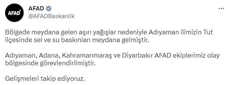 Adıyaman, Adana, Kahramanmaraş ve Diyarbakır AFAD ekiplerimiz olay bölgesinde görevlendirilmiştir.