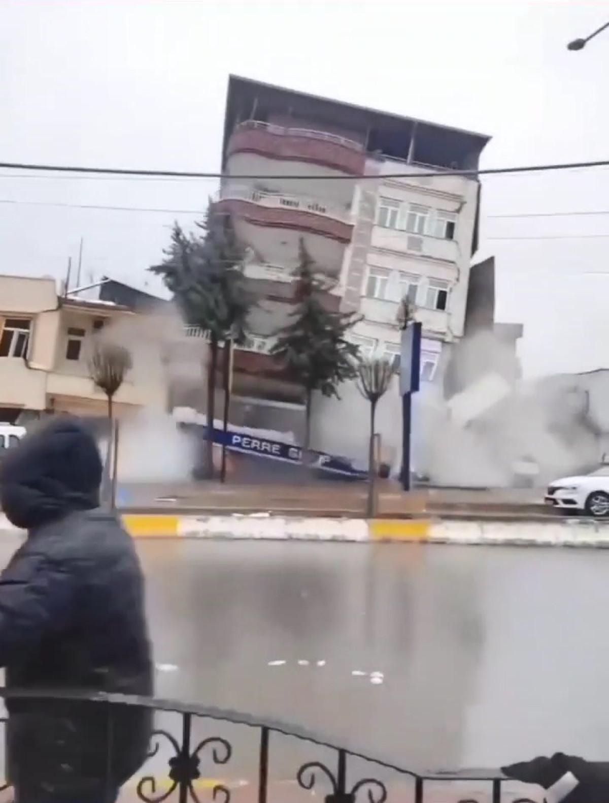 Yaşanan deprem felaketinde 4 katlı bir bina yıkılırken, binanın yıkılma anına ait yeni görüntüler ortaya çıktı.