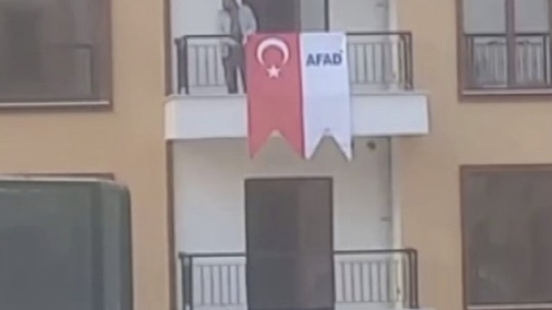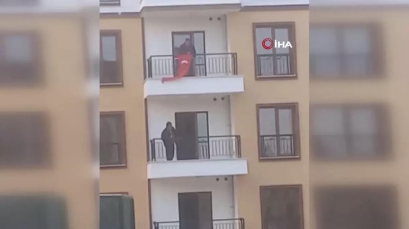 Adıyaman’da kalıcı deprem konutlarının balkonlarında dalgalanan Türk bayrakları orada bulunan iki kişi tarafından aşağı atılmıştı.