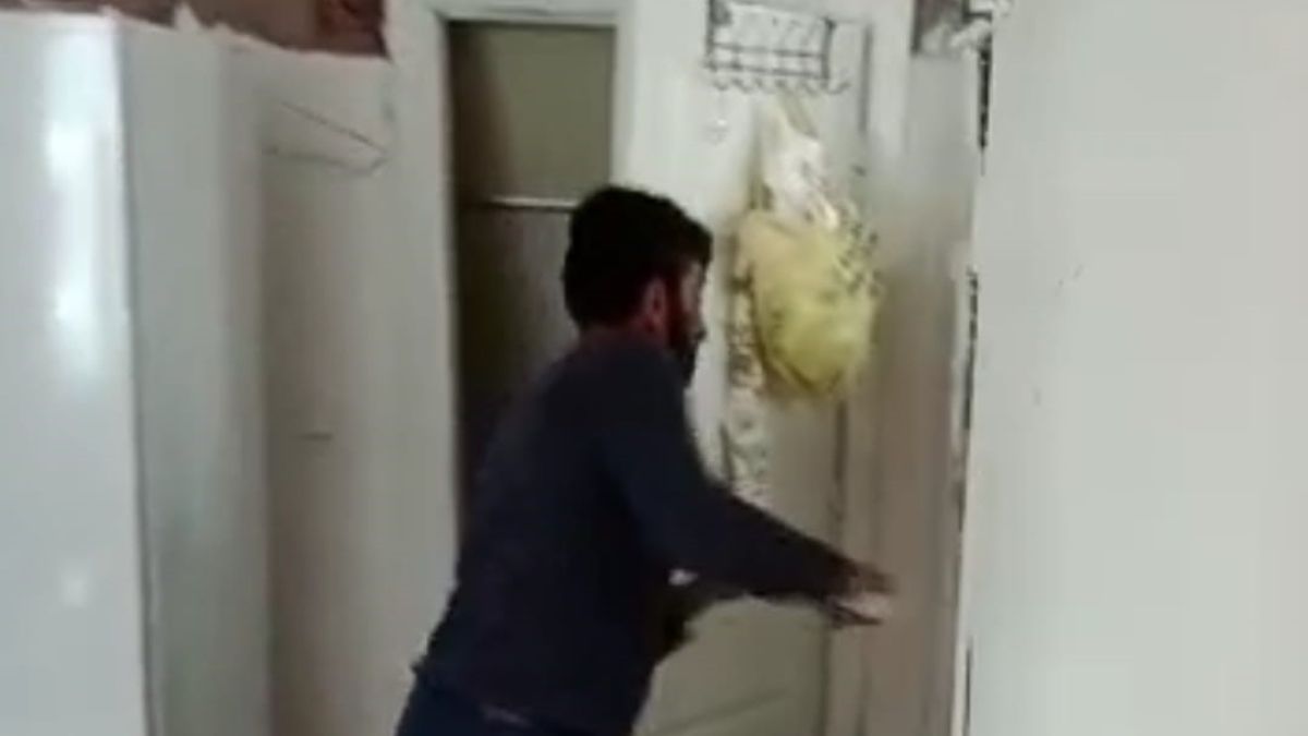 Girişleri tamamen kapanan daireler veya odaların duvarları kırılarak geçiş olan dairelerden eşyalar indiriliyor. O anlar ise telefon kamerası ile kayıt altına alındı.