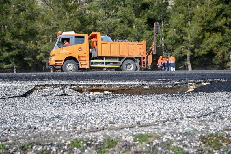 Daha sonra bu noktalarda trafik akışını kontrollü sağlayan ekipler, yarıkları ve çöken kısımları doldurup, asfaltlama çalışması yapıyor.