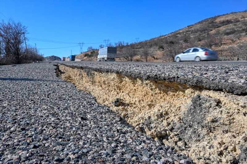 7.7 büyüklüğündeki deprem, karayollarında yarıklar açtı. Ekipler yollardaki hasarı tek tek tespit ederek, onarım çalışmalarına başladı.