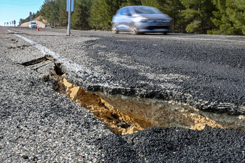 Büyük felaket, karayollarında yarıklara neden oldu.