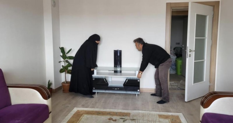 Sonuç çifti, temizliği yapılan konuta eşyalarını AFAD ekiplerinin yardımı ile yerleştirirken mutlulukları yüzlerine yansıdı.
