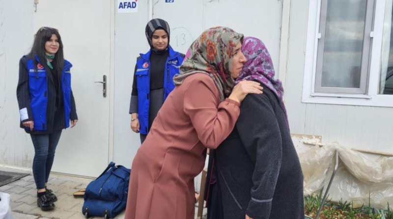 Konteynerde kalan ve konut çıkan aileler komşularıyla vedalaşarak, geçici barınma merkezinden ayrıldı.