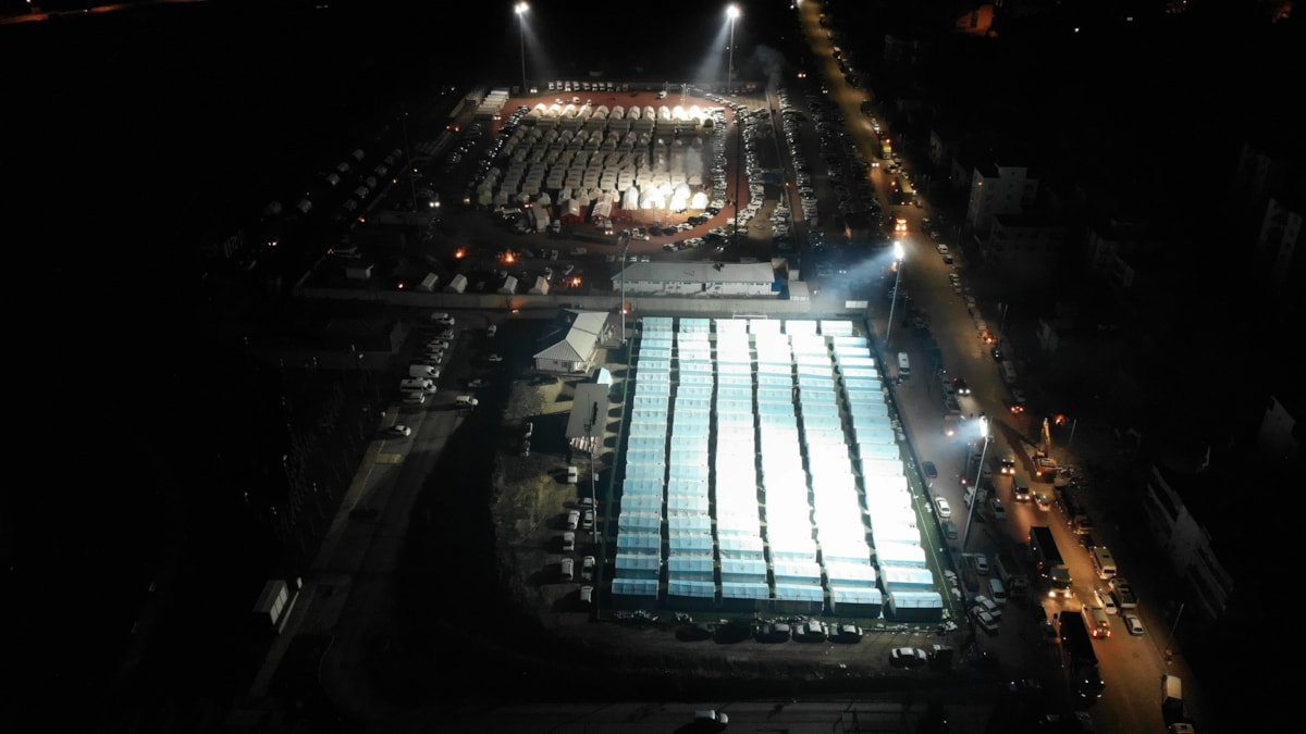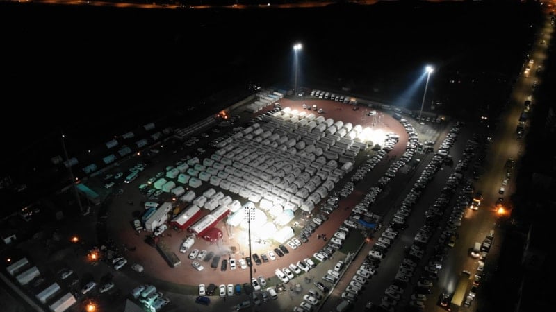 Kurulan çadır kentler drone ile havadan görüntülendi.