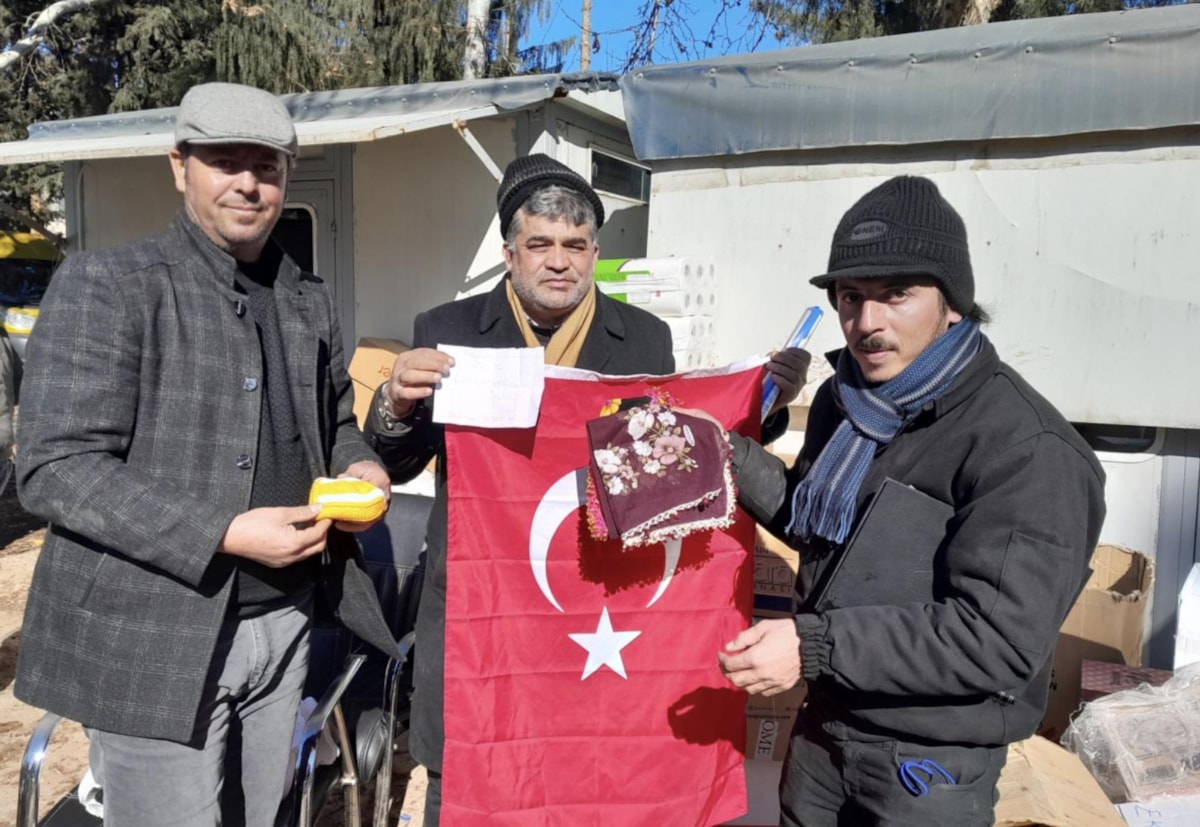 Depremzedeler için Çorum’dan gönderilen yardım kolilerinin birinin içerisinden çıkan Türk bayrağına sarılı çeyizlik yazmalar ve bebek patiği depremzedeleri duygulandırdı.