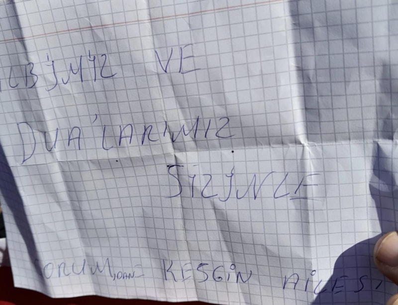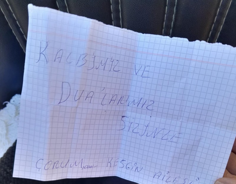 Yardım kolilerinin içerisinden çıkan miniklerin notlarında ise "Kalbimiz ve dualarımız sizinle" diye yazıldı.