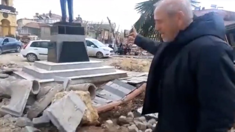 Adıyaman'da fay hattı üzerinde yıkılmayan Atatürk heykelini görünce duygulanan CHP Milletvekili Yıldırım Kaya olay yerinde çektiği videoda, "Cumhuriyetimizin kurucusunu deprem bile yıkamamış uğraşmayın" dedi.