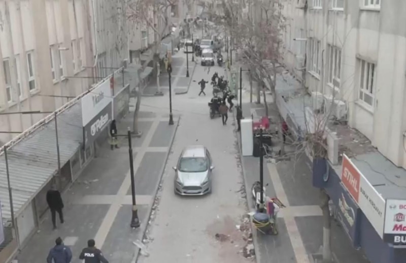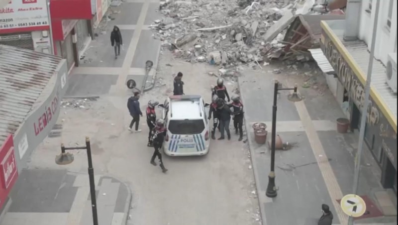 Kentte 10 motosiklet ve 20 personelle görev yapan Yunus timleri, birçok binanın yıkıldığı sokaklarda devriye görevi yürütürken şüphe üzerine 2 kişiyi durdurmak isterken şüpheliler kaçtı.