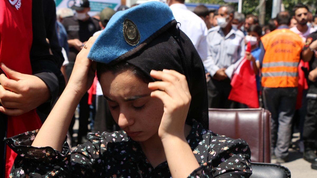 Adıyaman'da şehidin cenazesini ablası üniformasıyla, nişanlısı beresiyle uğurladı