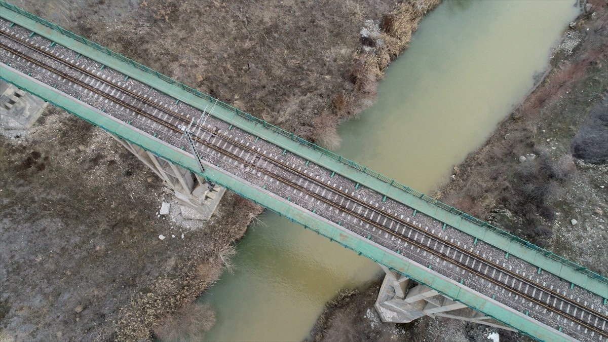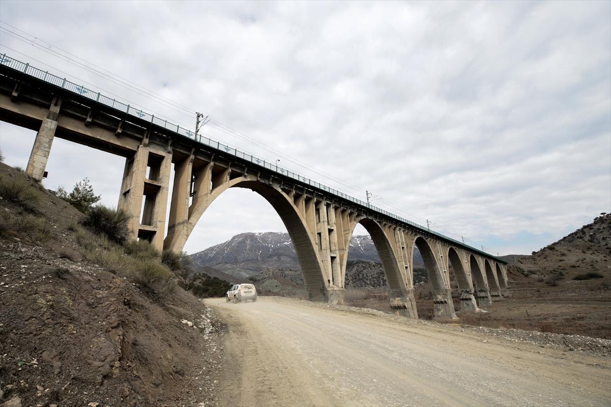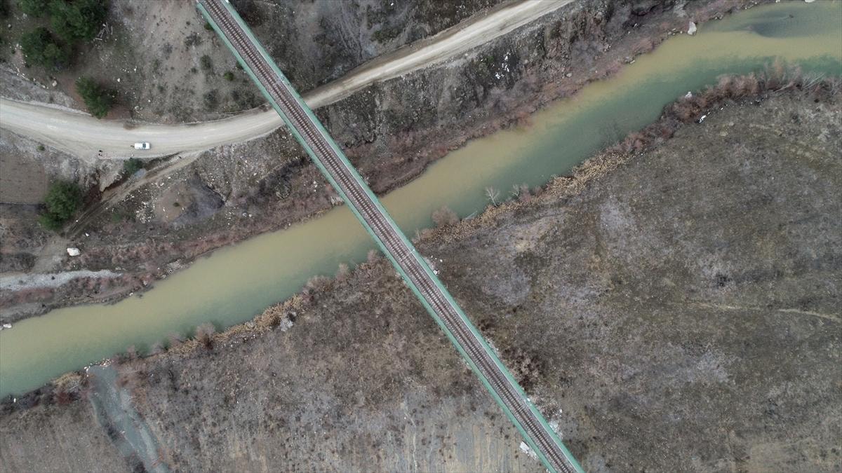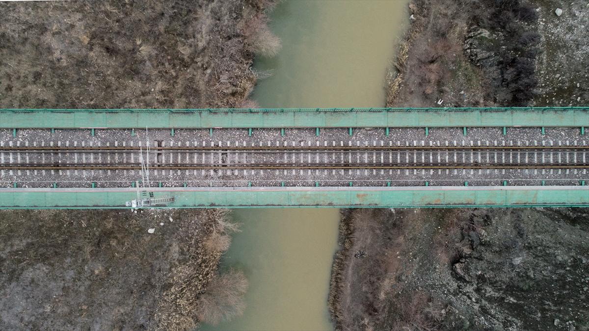 Malatya'nın Hekimhan ilçesindeki demir madenini Hatay'ın İskenderun ilçesine götürmek için kullanılan köprü, demir yoluna depremin verdiği hasardan dolayı kullanılamıyor.