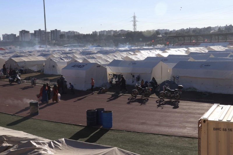 Kahramanmaraş merkezli depremlerin yıkıma yol açtığı illerden Adıyaman'da, Eğriçay üzerinde kurulan çadır kentte 5 bin depremzedeye hizmet veriyor.