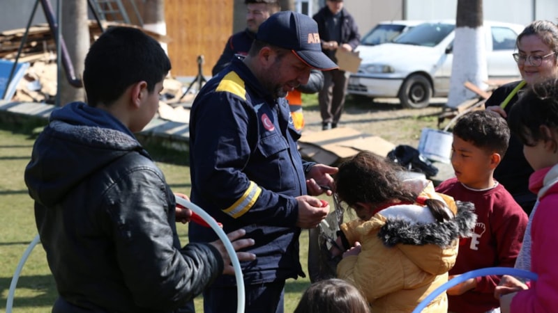 Arama kurtarma çalışmalarından çadır kurulumuna kadar her alanda çalışan AFAD görevlileri, depremde en büyük travmayı yaşayan çocuklara hediyeler dağıttı.