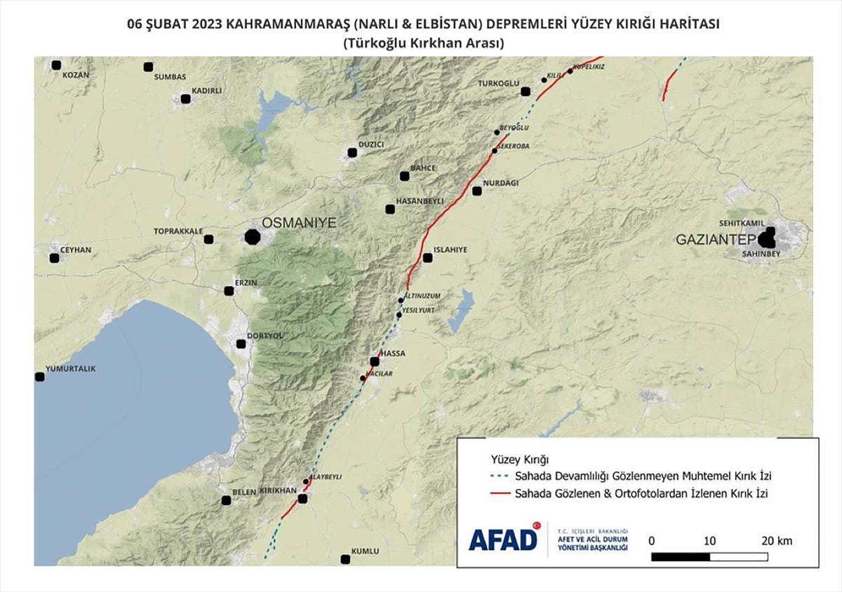 Depreme kaynaklık eden fayların tanımlanması, meydana gelen yüzey kırıklarının tespit edilmesi ve yapısal hasar nedenlerinin ortaya konması amacıyla 10 Şubat-16 Şubat'ta bölgede yapılan saha çalışmalarının sonuçlarını içeren raporda, her iki depremin Kahramanmaraş, Hatay, Adıyaman, Gaziantep, Malatya, Kilis, Diyarbakır, Adana, Osmaniye, Şanlıurfa ve Elazığ'da çok şiddetli hissedildiği can kaybı ve ağır hasara neden olduğu vurgulandı.