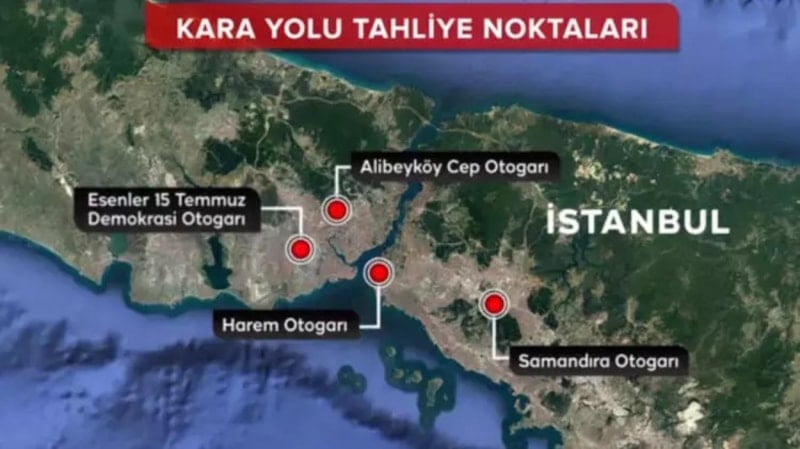 Karayolu için ise Esenler, Alibeyköy, Samandıra ve Harem Otogarları acil çıkış terminalleri olarak hizmet verecek.