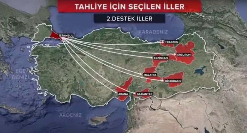 İhtiyaç halinde ikinci grup olarak Adana, Gaziantep, Malatya, Trabzon, Diyarbakır, Erzurum ve Erzincan devreye girecek. Ayrıca, isteyen depremzedeler memleketlerine gönderilecek.