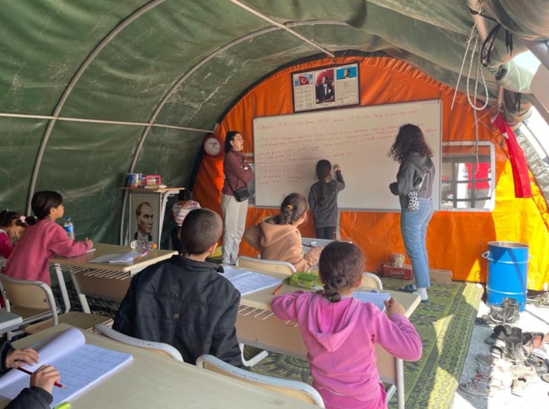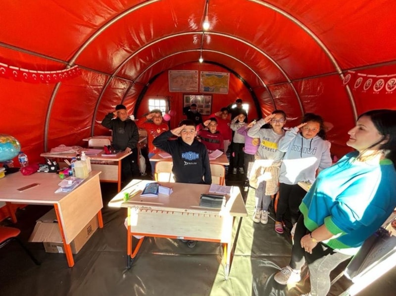 Acının ortasında depremzedelerin yüzünü güldüren güvenlik güçleri, son olarak çocukların eğitimi için işe koyuldu.