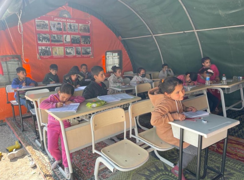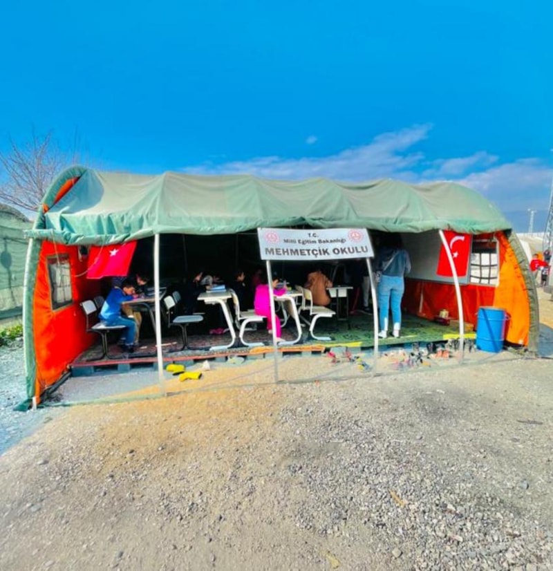 Deprem bölgesindeki çadır kentlerde çocuklarımızın eğitimlerine devam edebilmeleri için Mehmetçik okulları oluşturmaya devam ediyoruz.