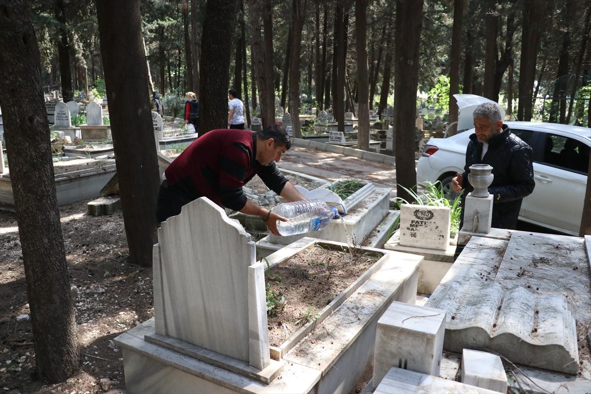 Adana'nın Seyhan ilçesindeki Narlıca Mahallesi'ndeki mezarlıkta da ziyaretler oldu. Yakınları için dua eden aileler, kabirlere çiçek bıraktı.