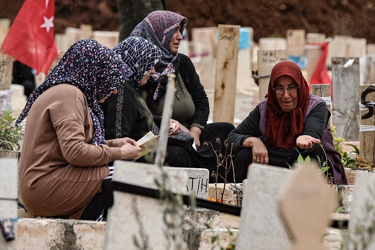 Antakya ilçesindeki Asri Mezarlığı ziyaret eden başta depremzede yakınları ve diğer aileler, kaybettikleri yakınları için Kur'an-ı Kerim okuyup dua etti.