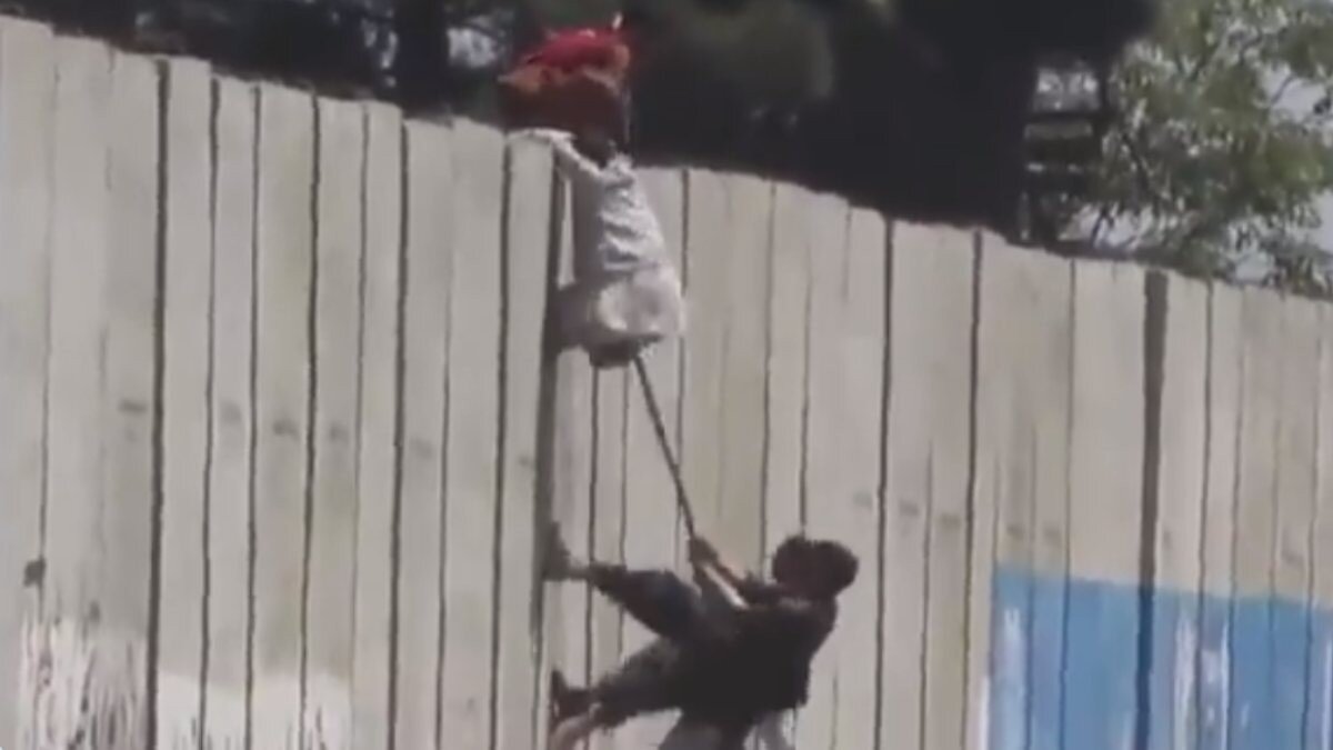 Cep telefonu kamerasına yansıyan görüntülerde, Afganların 4 metrelik havalimanı duvarlarını halatlarla tırmanarak içeri girmeye çalıştığı görüldü.