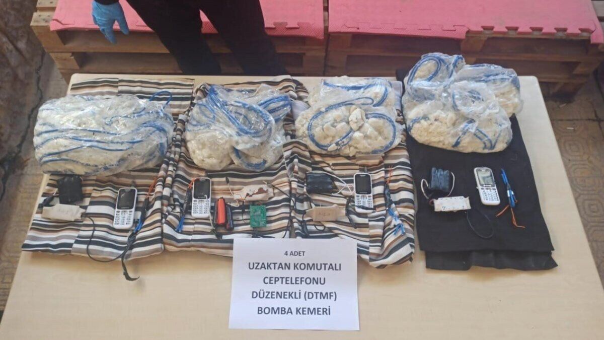 Münbiç'ten geldikleri öğrenilen teröristler ile saldırıda kullanacakları patlamaya hazır, 13 kilogram ağırlığındaki C4 patlayıcı ve telefon düzenekli 4 canlı bomba yeleği ele geçirildi.