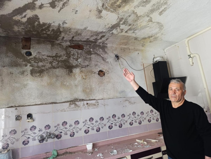 Fakat bir süre sonra Ali Sevim, evinin mutfak ve banyosunun tavanın rutubetlendiğini daha sonra da su damladığını fark etti.