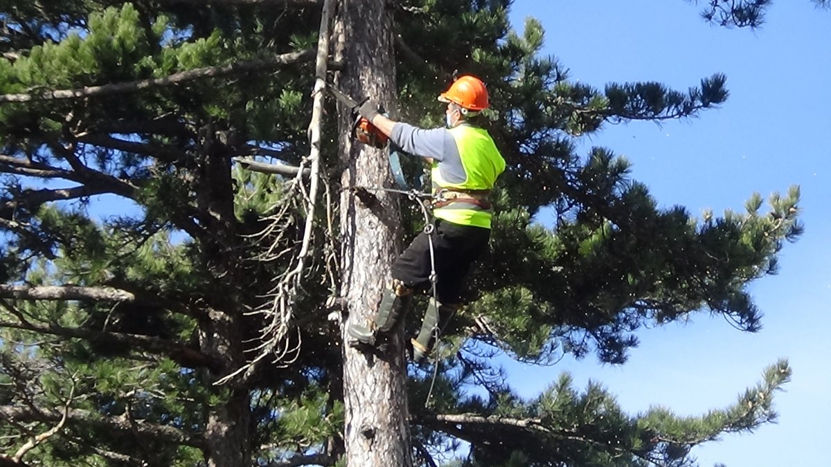 Yükseklerde çalışmanın zorluklarını ve keyifli yanlarını anlatılar. Ormanların gençlik olarak adlandırılan fidanların daha iyi ve kaliteli yetişmesi için yetişkin çam ağaçlarının budanması işini yapan Cengiz Cantırık “Buraya geldik. Bu büyük ağaçların altındaki gençliği kurtarmak için dallarını toparlıyoruz. Önce iş güvenliğimizi sağlayarak ekipmanlarımız ile bir sincap gibi tepesine tırmanarak çıkıyoruz. Aşağıdan yukarıya doğru budakları budaya budaya gidiyoruz. Yukarıdan aşağıya indiğimiz zaman hasar çok olur. Aşağıdaki genç fidanlara zarar vermemek için dikkat ediyoruz” dedi.