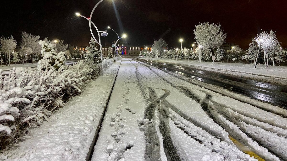 Akşam saatlerinde başlayan kar yağışı nedeniyle kent beyaza büründü.