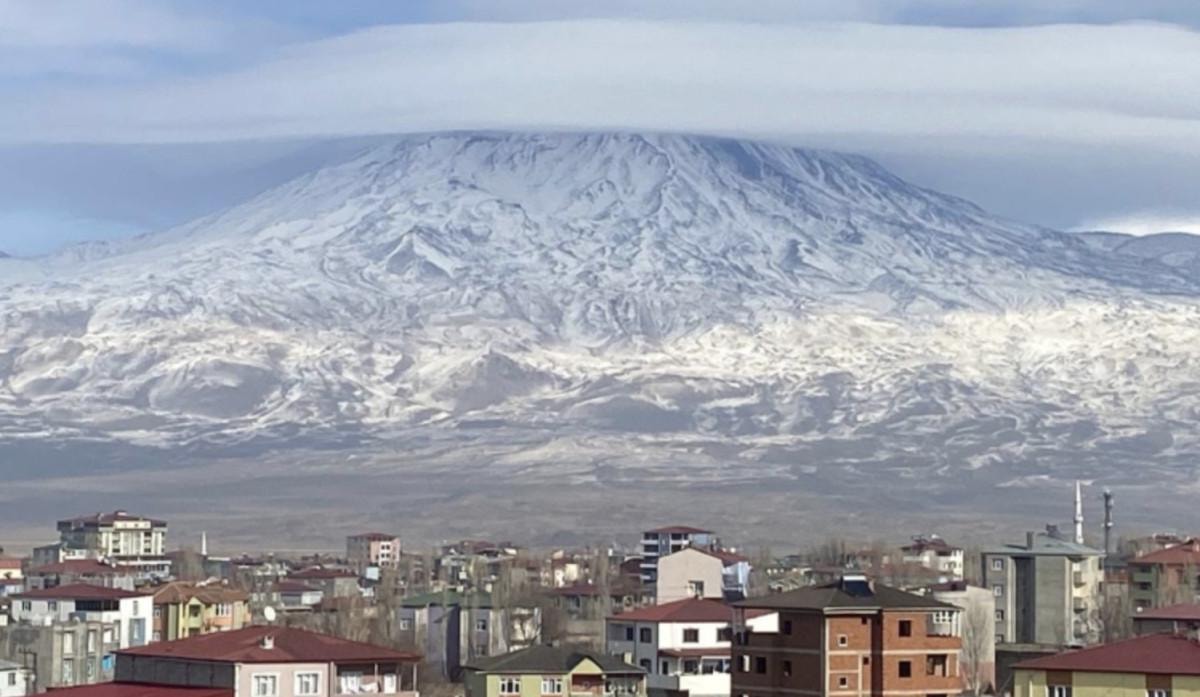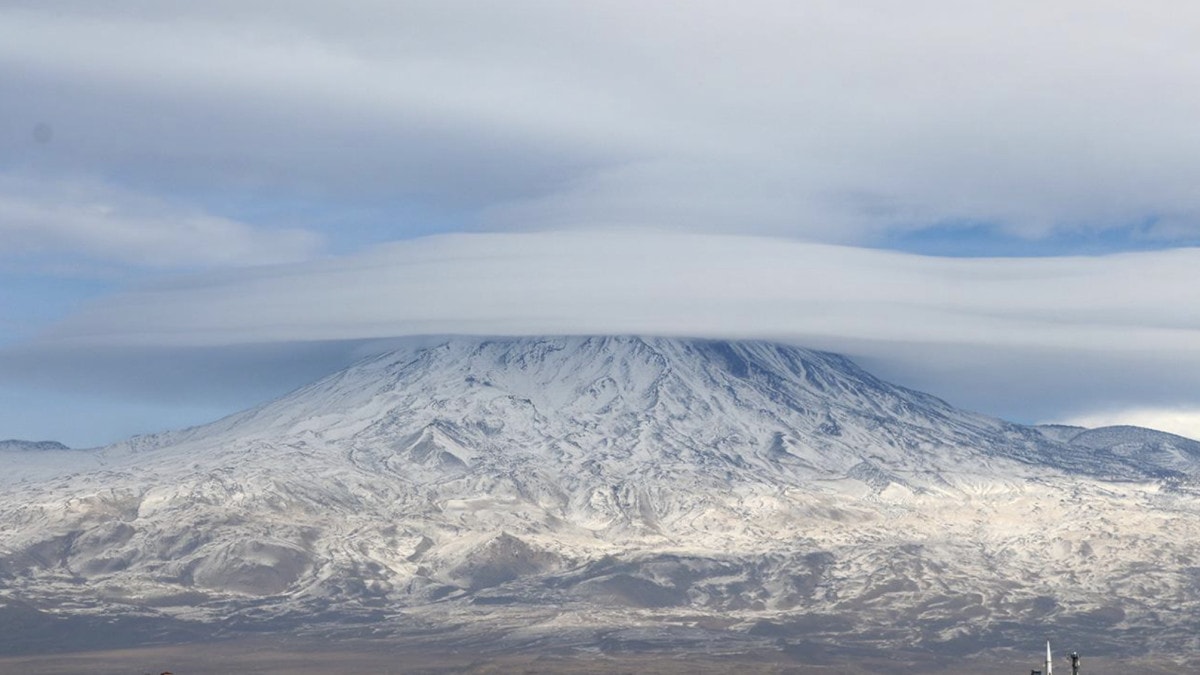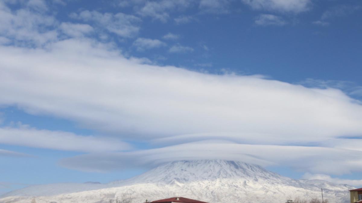 Dağın üst kısımlarını ve zirvesini, halk arasında "şapka" diye bilinen mercek bulutu sardı.