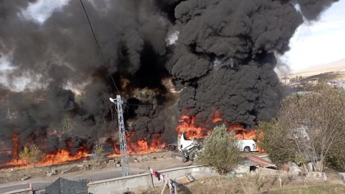 Görüntülerde, otobüsün alev alev yandığı görüldü.