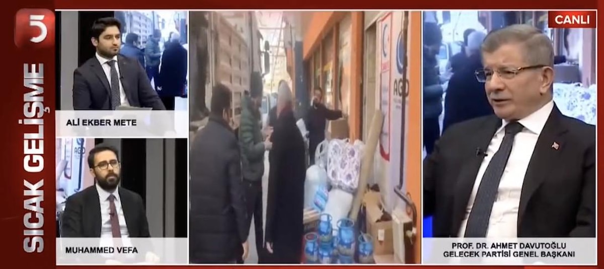 Bu kapsamda deprem bölgesinde incelemelerde bulunduktan sonra TV5 yayınına katılan Gelecek Partisi Genel Başkanı Ahmet Davutoğlu, iktidara yüklendi.