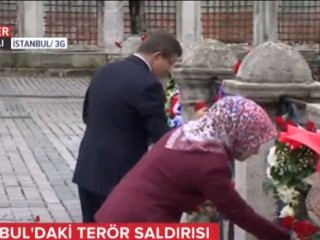 Başbakan Ahmet Davutoğlu, Sultanahmet'te patlamanın yaşandığı bölgeyi ziyaret etti. Dikilitaş'ın olduğu alana karanfil bırakan Ahmet Davutoğlu ve eşi Sare Davutoğlu, bölgede yaşananlar hakkında bilgi aldı.