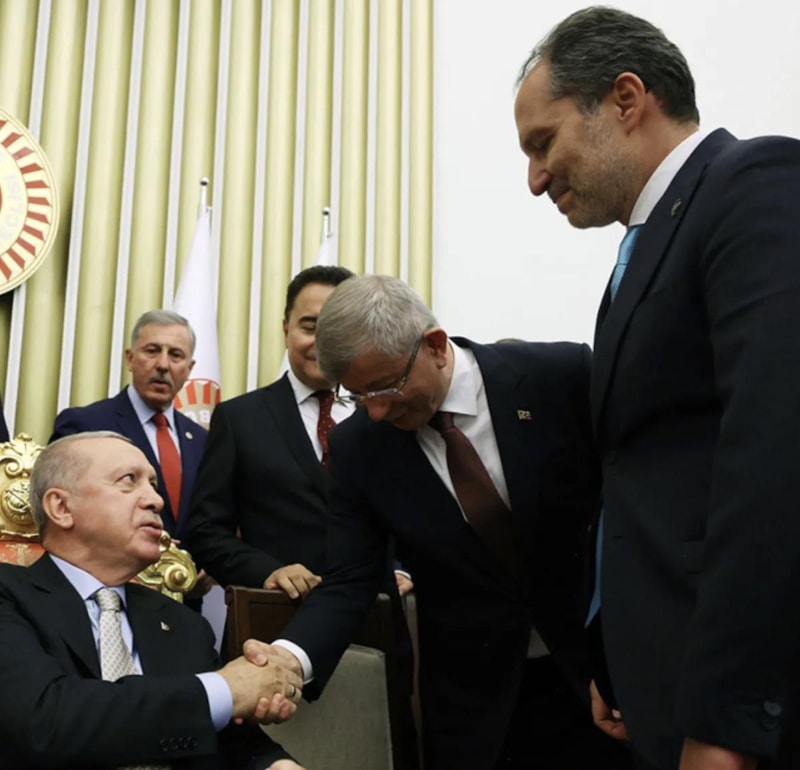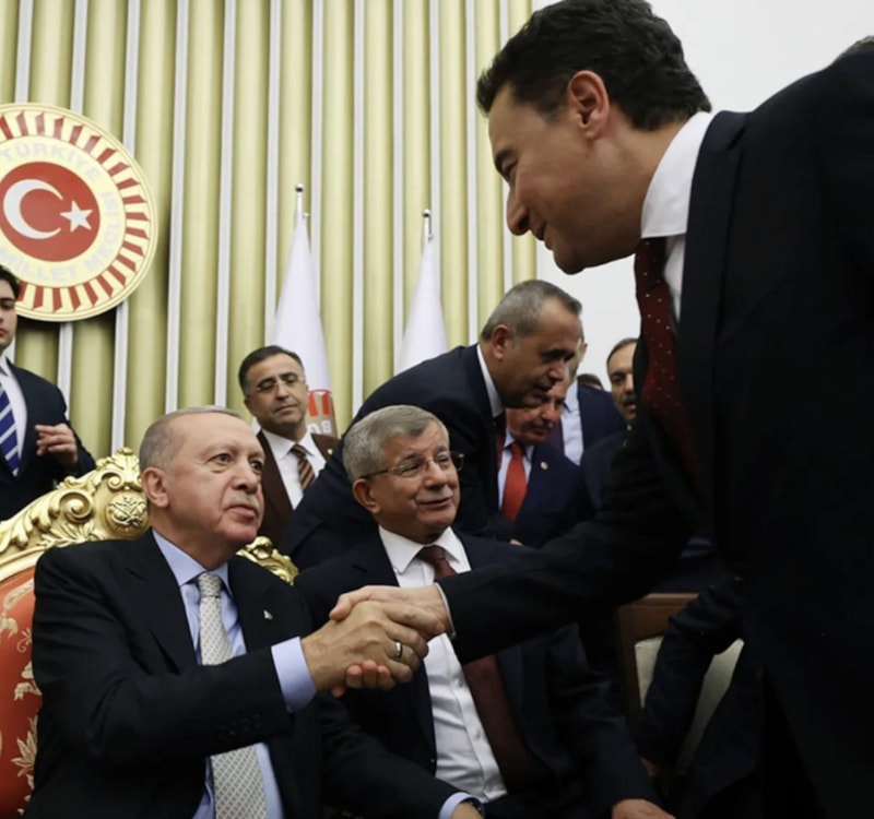 Meclis resepsiyonunda Cumhurbaşkanı Recep Tayyip Erdoğan ile çektirdikleri fotoğrafa gelen eleştirilere yanıt veren Gelecek Partisi Genel Başkanı Ahmet Davutoğlu, "Biz oturduk diye muhalefet trolleri üstümüze saldırdılar. Hiç kimseye eyvallahım olmadı. Bizi en ağır şekilde eleştiren muhalefet trollerine de asla boyun eğmeyiz" ifadelerini kullandı.