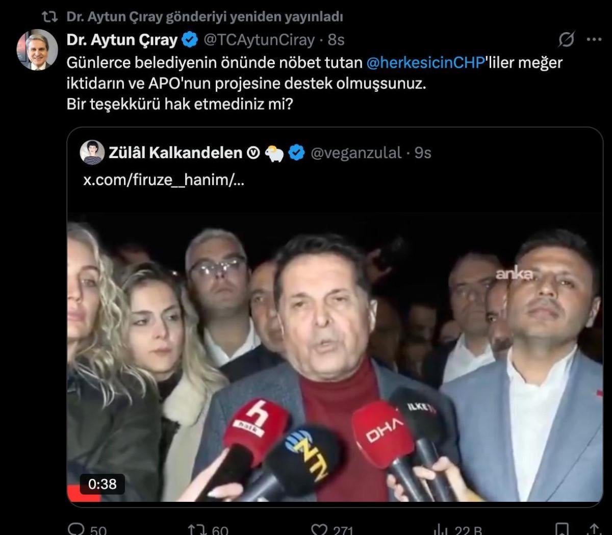 CHP'ye yakın isimler, Bahçeli'ye olan teşekkürlerine tepki göstererek, "Günlerce belediyenin önünde nöbet tutan CHP'liler meğer iktidarın ve APO'nun projesine destek olmuşsunuz. Bir teşekkürü hak etmediniz mі?" sözleriyle linç girişiminde bulundu.