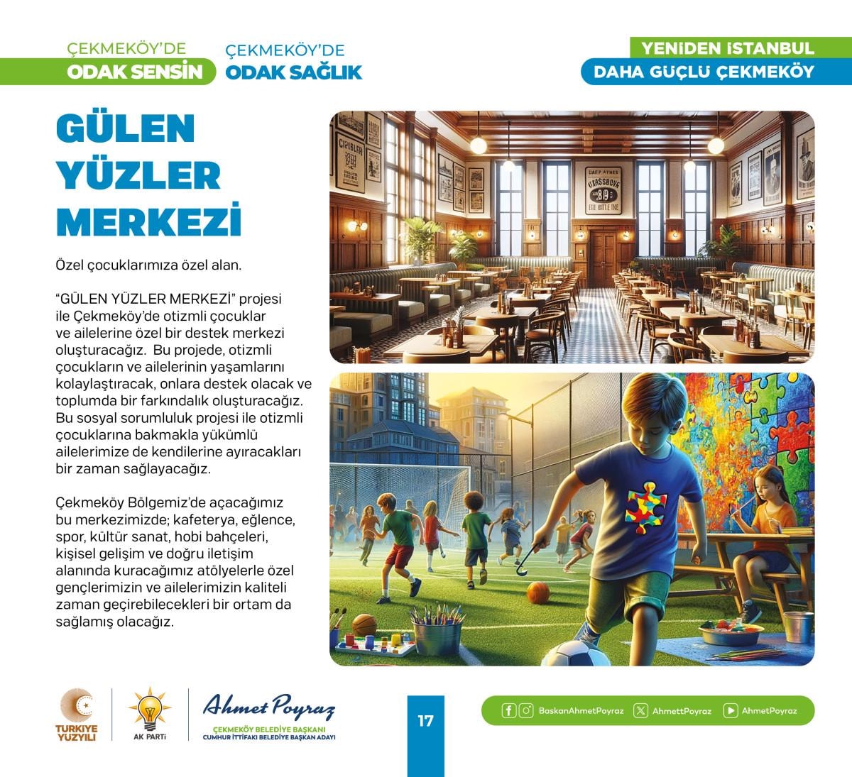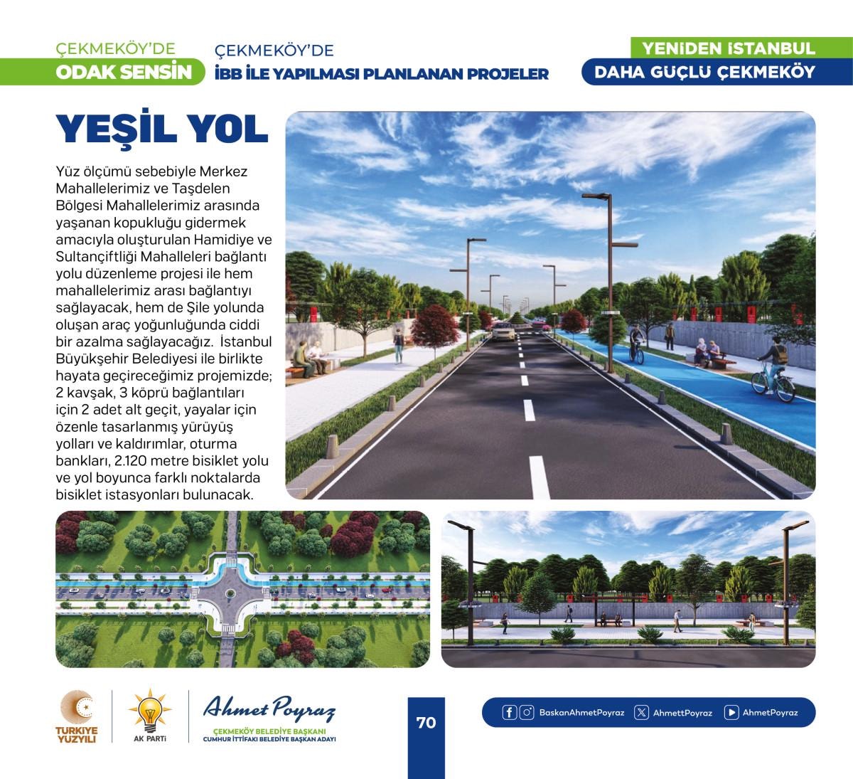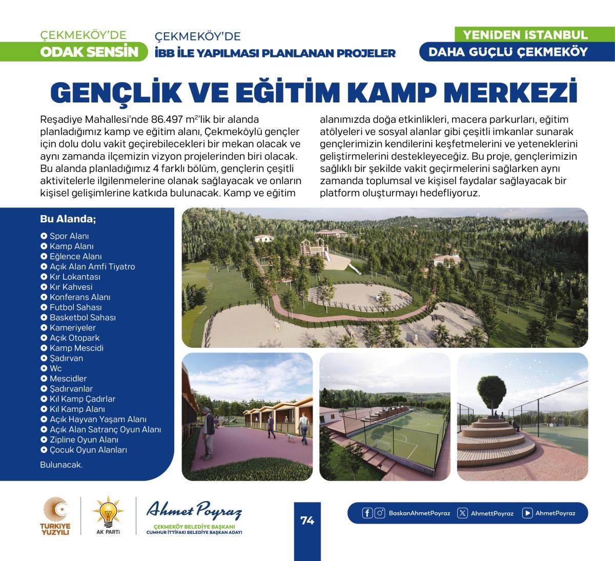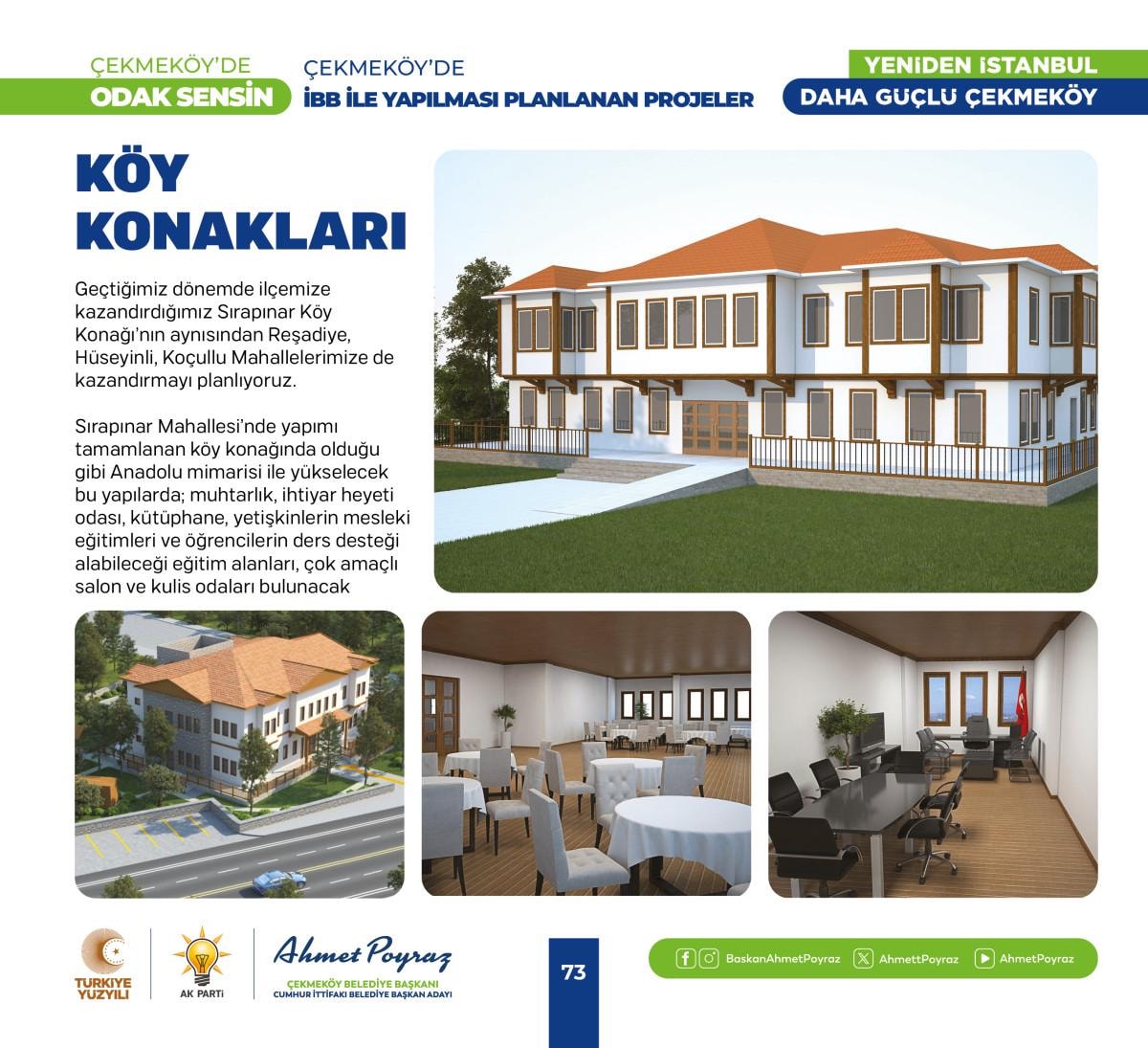 Çıktığımız hizmet yolculuğunda her zaman hemşehrilerimizle iç içe olduk ve bu birliktelik ilçemizdeki çalışmalarımıza pozitif yansıdı. Sizlerden aldığımız geri dönüşlerle şehrimizi birlikte şekillendirme imkanı bulduk. Bu projelerde, tıpkı geride bıraktığımız 15 yılda olduğu gibi sizlerin desteği ve katılımıyla hayat bulacak. Çünkü biz inanıyoruz ki, birlikte çalıştığımızda, birlikte ürettiğimizde Çekmeköy'ümüz daha da güçlenecek ve gelişecek. Siz değerli hemşehrilerimizin görüş ve önerileri, bu yolculukta bize rehberlik edecek. Unutma, Çekmeköy'de odak sensin; çünkü bu şehir, bu güzel ilçe hepimizin. Saygı ve sevgilerimle, “dedi.