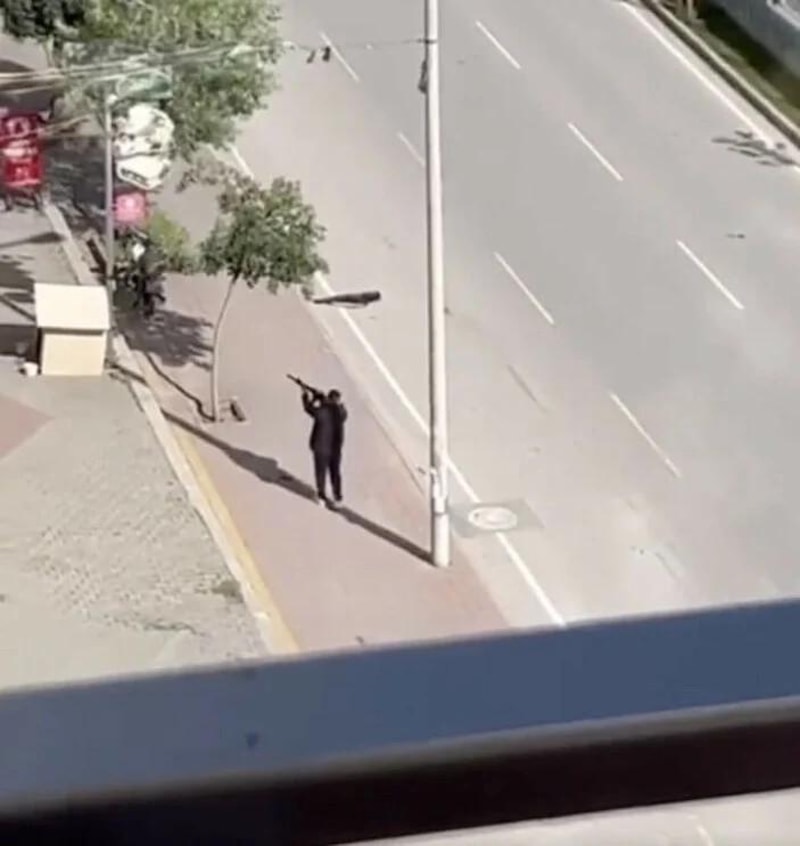 Parti tabelası ve bayrakların asılı olduğu tedbiren boşaltılan binaya elindeki tüfekle ateş eden şüpheli, polis ekiplerince yakalandı.