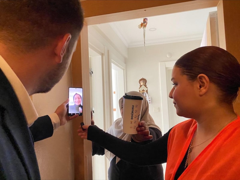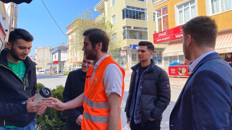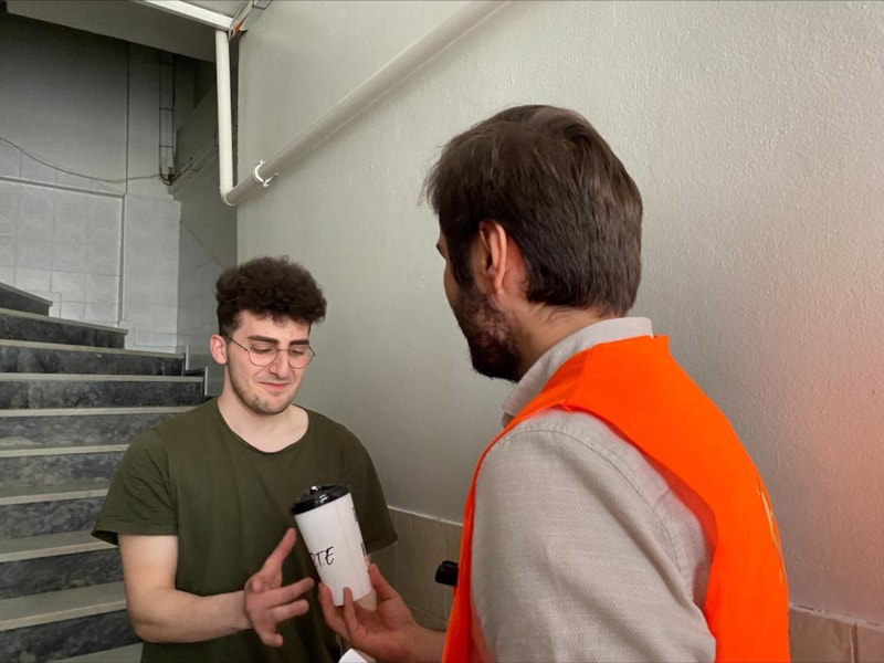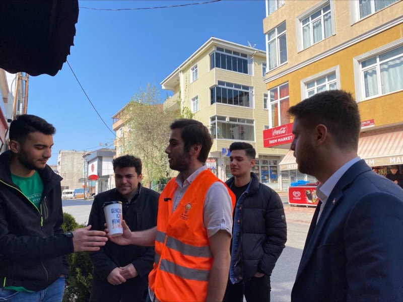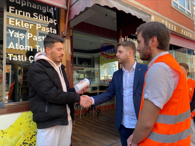 Ümraniye'de kapı kapı gezen gençlik kolları üyeleri, kendileri gibi ilk kez oy kullanacak vatandaşlara bardak hediye etti.