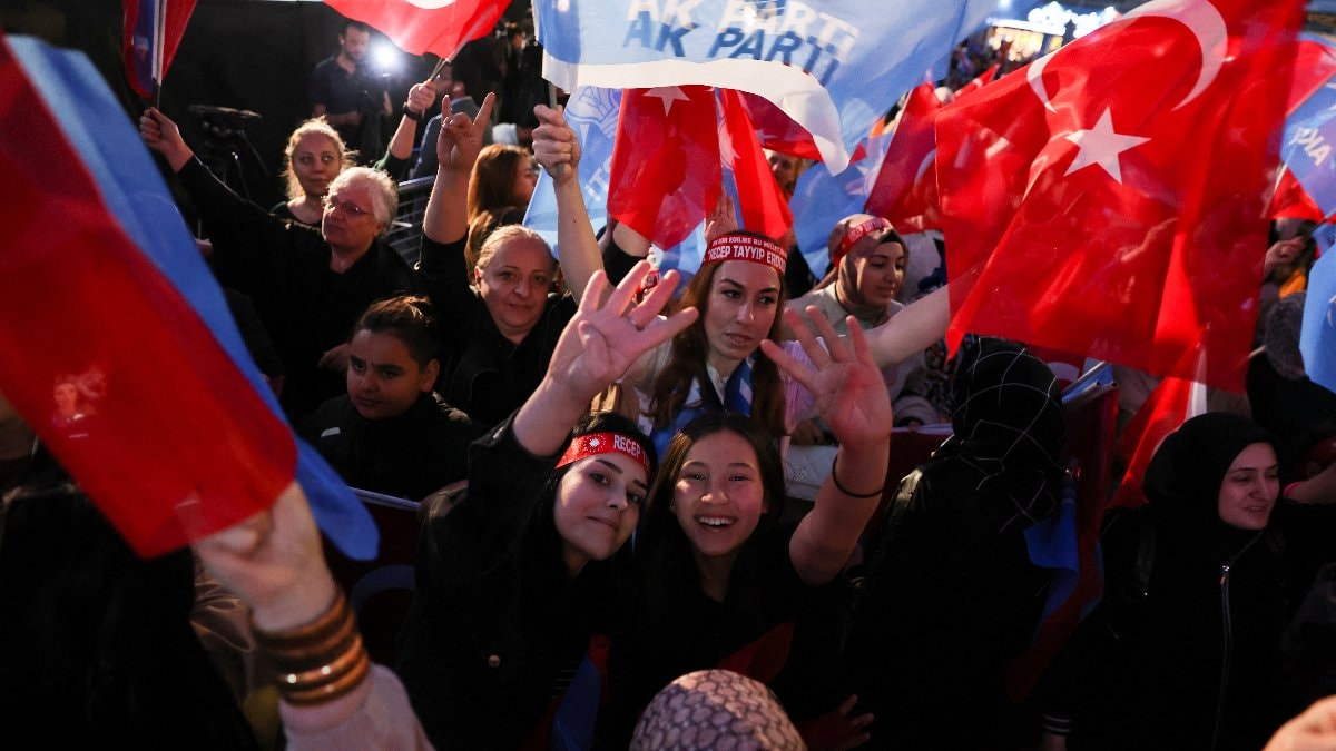 Oldukça coşkulu olduğu görülen kalabalık, seçim sonuçlarının netleşmesinin ardından Cumhurbaşkanı Erdoğan'ın yapacağı açıklamayı bekliyor.