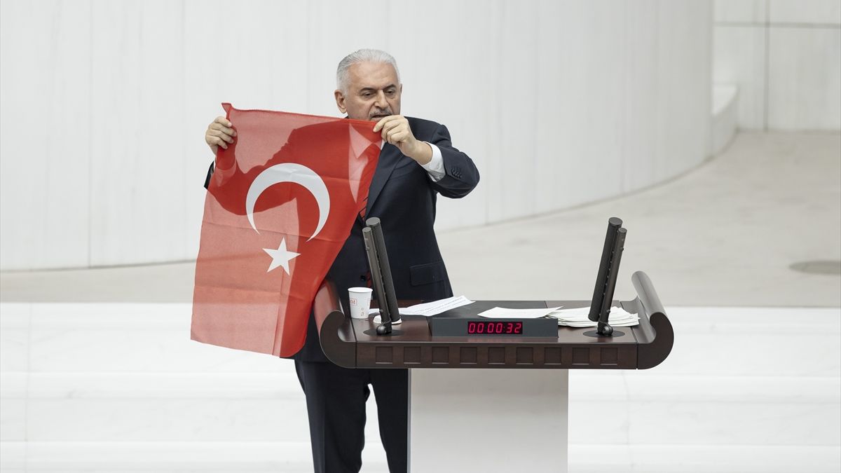 Yıldırım, "Bayrakları asalım" diyerek sözlerini noktalarken konuşması da vekiller tarafından ayakta alkışlandı.