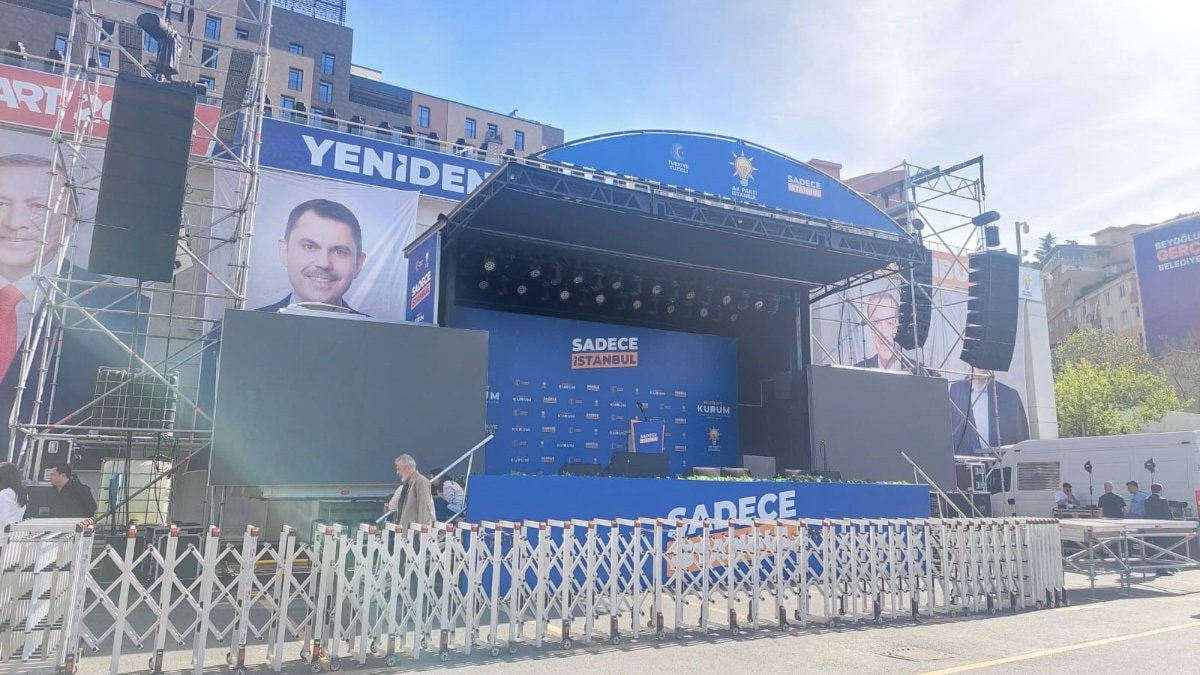 İl başkanlığı binası önünde, seçim sonucuna ilişkin konuşma yapılabilmesi için platform kuruldu.