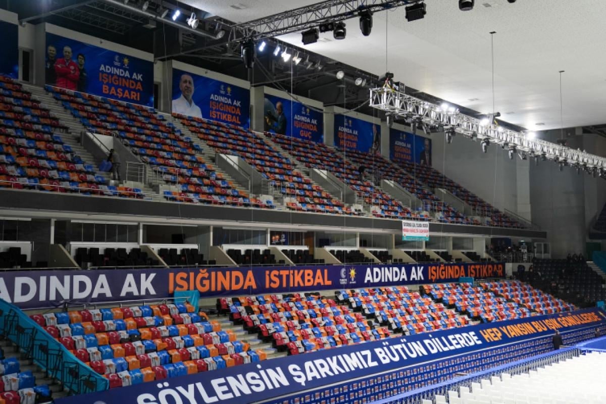 Sabahın erken saatlerinde itibaren salonu dolduran partililer, ellerinde 'Düşünemeyiz yarınları sensiz, bekle bizi 2028', 'Tenzile Ana'nın duasıyla büyüdün, mazlumların duasıyla yürüdün, iyi ki doğdun, iyi ki varsın reis' yazılı pankartlar taşıdı.