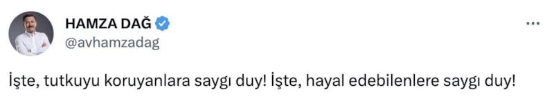 Hamza Dağ paylaşımında şu ifadeleri kullandı: