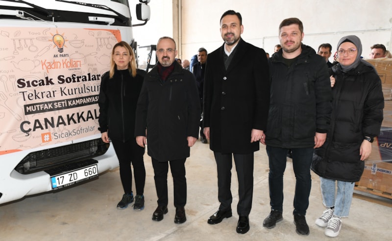 Bu kapsamda AK Parti Grup Başkanvekili ve Çanakkale Milletvekili Bülent Turan’ın katılımıyla, AK Parti Genel Merkez Kadın Kolları Başkanlığı’nın başlattığı kampanya çerçevesinde AK Parti Çanakkale İl Kadın Kolları Başkanlığı’nın koordinasyonunda hazırlanan mutfak seti içeren 1 tır, Kahramanmaraş’a gönderildi.