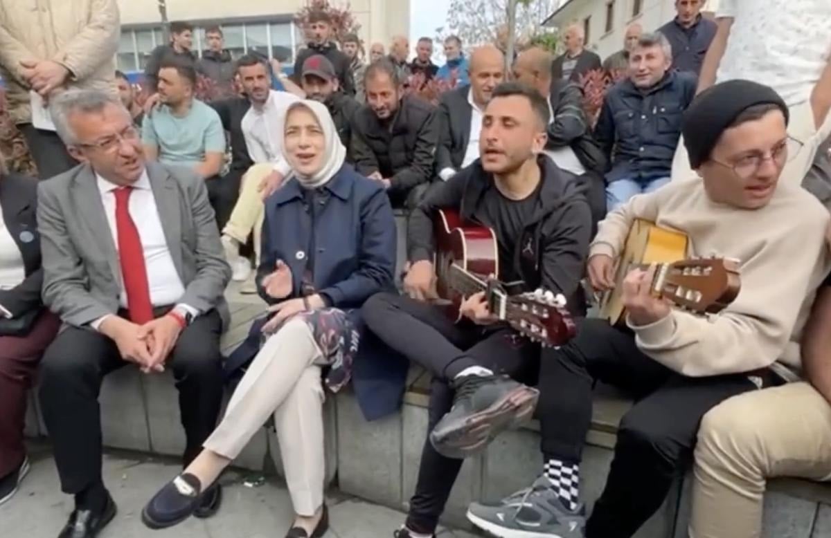 Sokak müzisyenleriyle de denk gelen iki siyasetçi, onlara Gesi Bağları türküsünü söyleyerek eşlik etti.