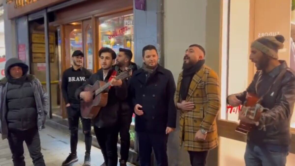 AK Parti Adıyaman Milletvekili Muhammed Fatih Toprak da, İstiklal Caddesi'nde Kürtçe şarkı söyleyen farklı bir gruba eşlik etti.