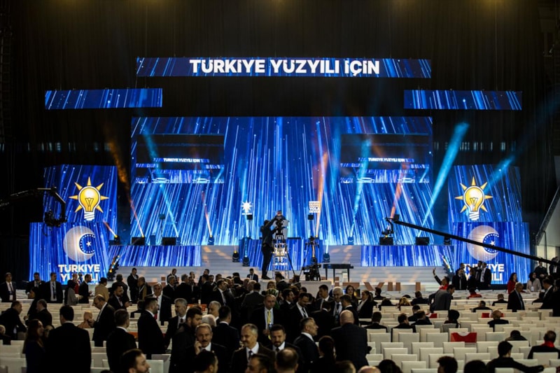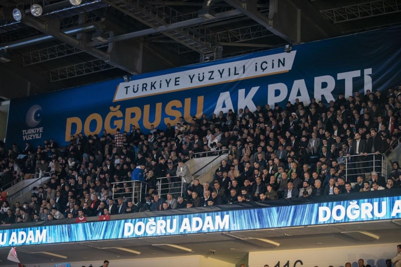 Salonda, "Doğrusu AK Parti", "Türkiye Yüzyılı için doğru adımlarla yola devam", "Türkiye Yüzyılı için hemen şimdi", "Doğru zaman doğru adam", "Lider masa başında değil iş başında belli olur" sloganlarının yazılı olduğu afişler yer aldı.